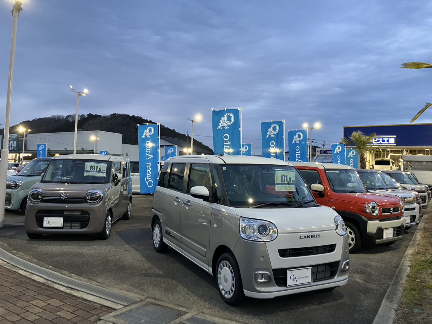 夕暮れに映える展示場😊✨軽自動車ずらり🚗